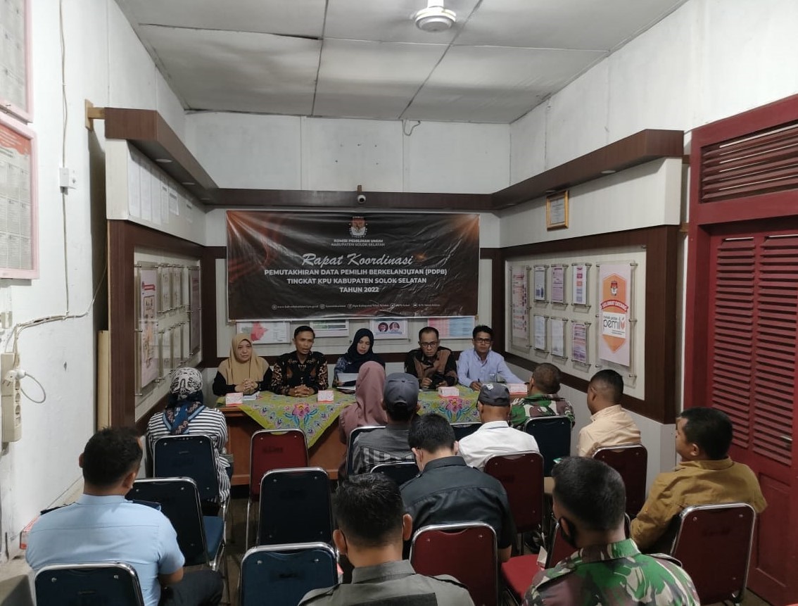 Pada kesempatan ini, Nila Puspita, Ketua KPU Solok Selatan menyampaikan bahwa kegiatan rapat koordinasi (rakor) ini dilakukan setiap 3 bulan, untuk minta tanggapan dan masukan serta mengajak stakeholder dan partai politik ikut proaktif terhadap pemutakhiran data pemilih ini seperti pemilih meninggal dunia, berstatus TNI/Polri, pindah domisili, berusia 17 tahun dan purnabakti/pensiunan.