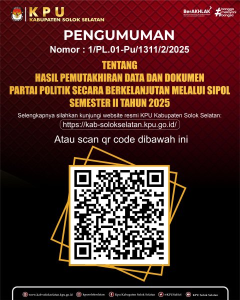 PENGUMUMAN TENTANG PEMUTAKHIRAN DATA PARTAI POLITIK SEMESTER II TAHUN 2025