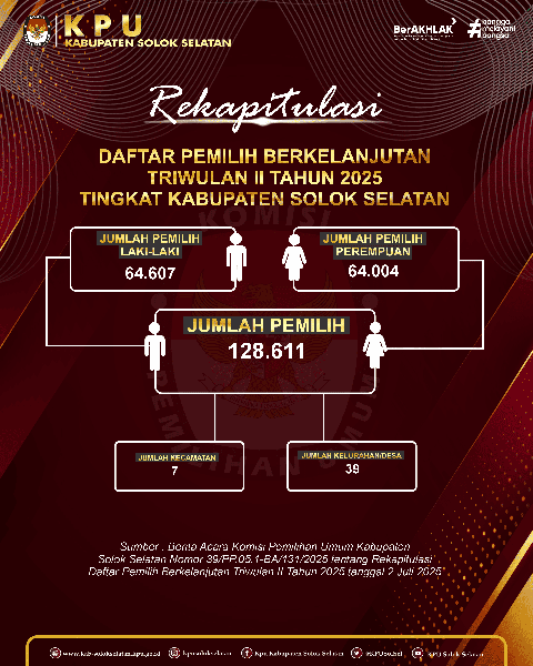 BERITA ACARA NOMOR 39/PP.05.1-BA/1311/2025 TENTANG REKAPITULASI DAFTAR PEMILIH BERKELANJUTAN TRIWULAN II TAHUN 2025 | KLIK DISINI |