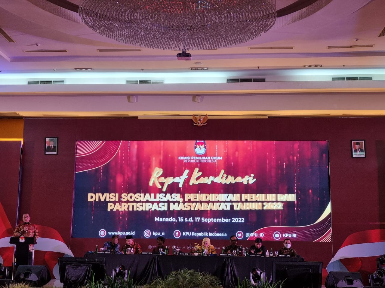 Manado, kab-solokselatan.kpu.go.id - Ketua Divisi Sosialisasi, Pendidikan Pemilih dan Partisipasi Masyarakat KPU Kabupaten Solok Selatan, Andi Andrawan Putra beserta Kasubbag Teknis dan Hupmas, Linda Susanti menghadiri kegiatan Rapat Koordinasi Divisi Sosialisasi, Pendidikan Pemilih dan Partisipasi Masyarakat tahun 2022 yang diadakan di Manado Sulawesi Utara pada tanggal 15-17 September 2022.
