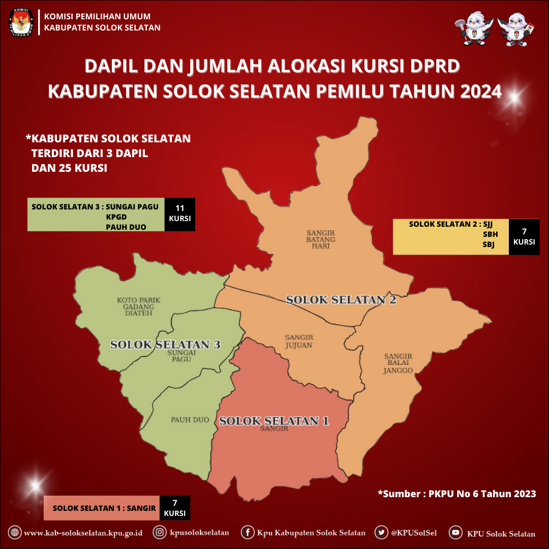 DAPIL DAN JUMLAH ALOKASI KURSI DPRD KABUPATEN SOLOK SELATAN PEMILU TAHUN 2024