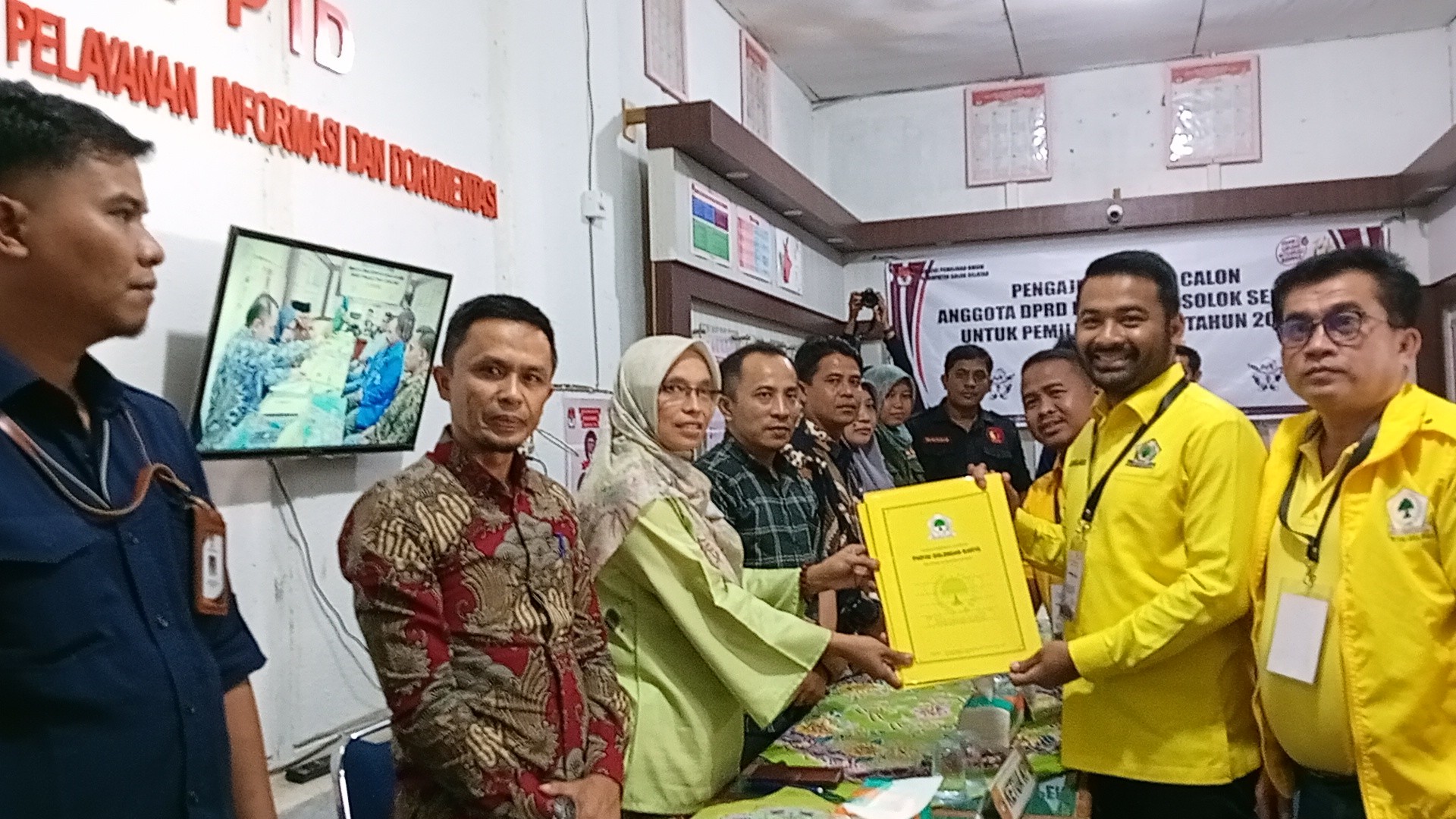Partai Golkar mengajukan bakal calon sebanyak 25 (dua puluh lima) balon atau 100% kursi. Hasil pemeriksaan dinyatakan Lengkap dan Diterima, KPU Solok Selatan menyerahkan Tanda Terima Penerimaan Berkas pendaftaran dan Berita Acara.