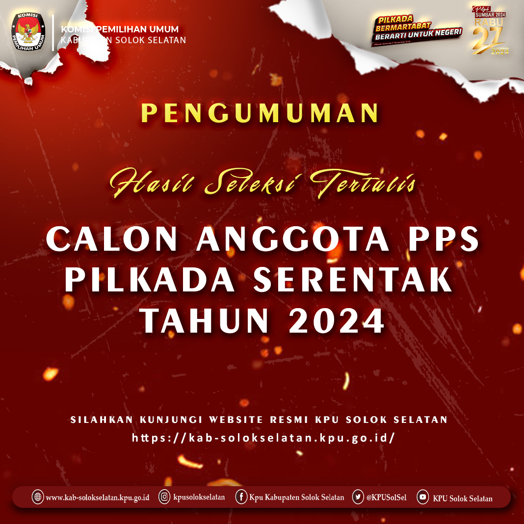 HASIL SELEKSI TERTULIS CALON ANGGOTA PANITIA PEMUNGUTAN SUARA UNTUK PEMILIHANGUBERNUR DAN WAKIL GUBERNUR, BUPATI DAN WAKIL BUPATI PADAKABUPATEN SOLOK SELATAN TAHUN 2024