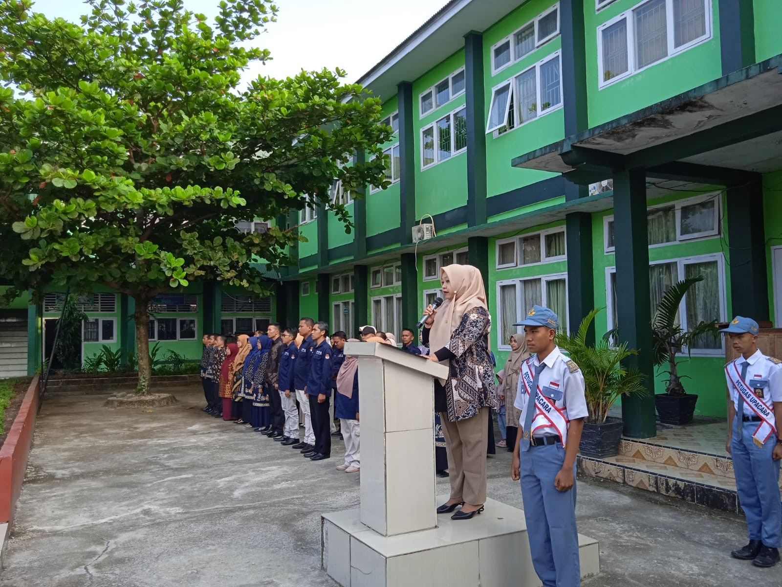 kab-solokselatan.kpu.go.id, Padang Aro - Anggota KPU Kabupaten Solok Selatan Novia Syahfitri sebagai Pembina Upacara Bendera di SMA Negeri 1 Solok Selatan pada Senin (2/10/2023).