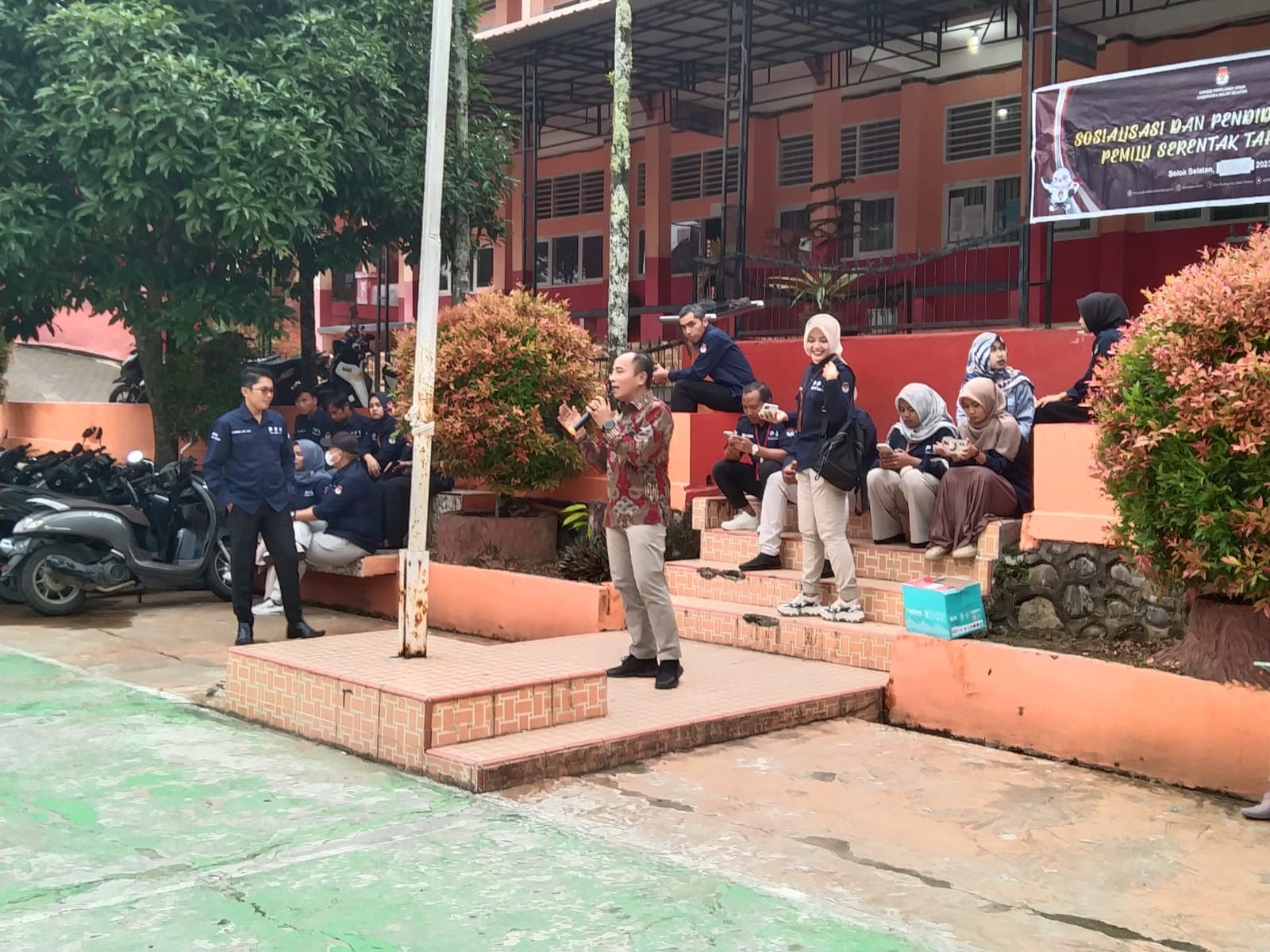 Sebagai upaya dalam meningkatkan partisipasi pemilih khususnya pemilih pemula, Komisi Pemilihan Umum (KPU) Kabupaten Solok Selatan melalui Divisi Teknis Penyelenggara, Dedi Fitriadi bersama Sekretariat KPU melakukan kegiatan sosialisasi Pemilihan Umum (Pemilu) di SMA Negeri 4 Solok Selatan, Senin (16/10/2023).