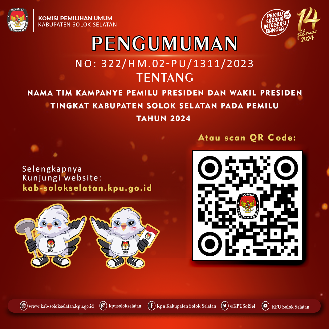 PENGUMUMAN NAMA TIM KAMPANYE PEMILU PRESIDEN DAN WAKIL PRESIDEN TINGKAT KABUPATEN SOLOK SELATAN PEMILU TAHUN 2024
