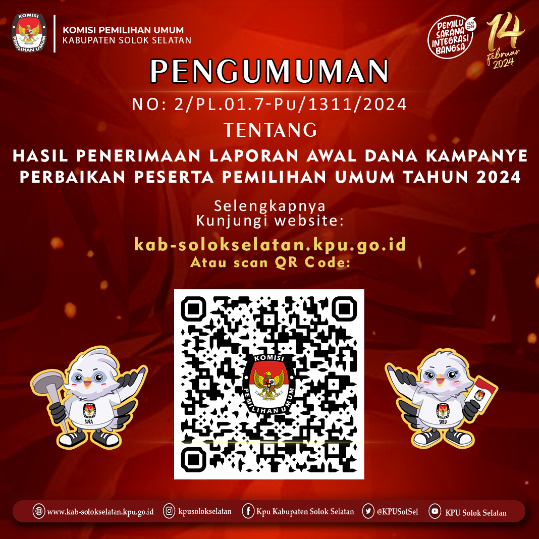 PENGUMUMAN TENTANG HASIL PENERIMAAN LAPORAN AWAL DANA KAMPANYE PERBAIKAN PESERTA PEMILU TAHUN 2024